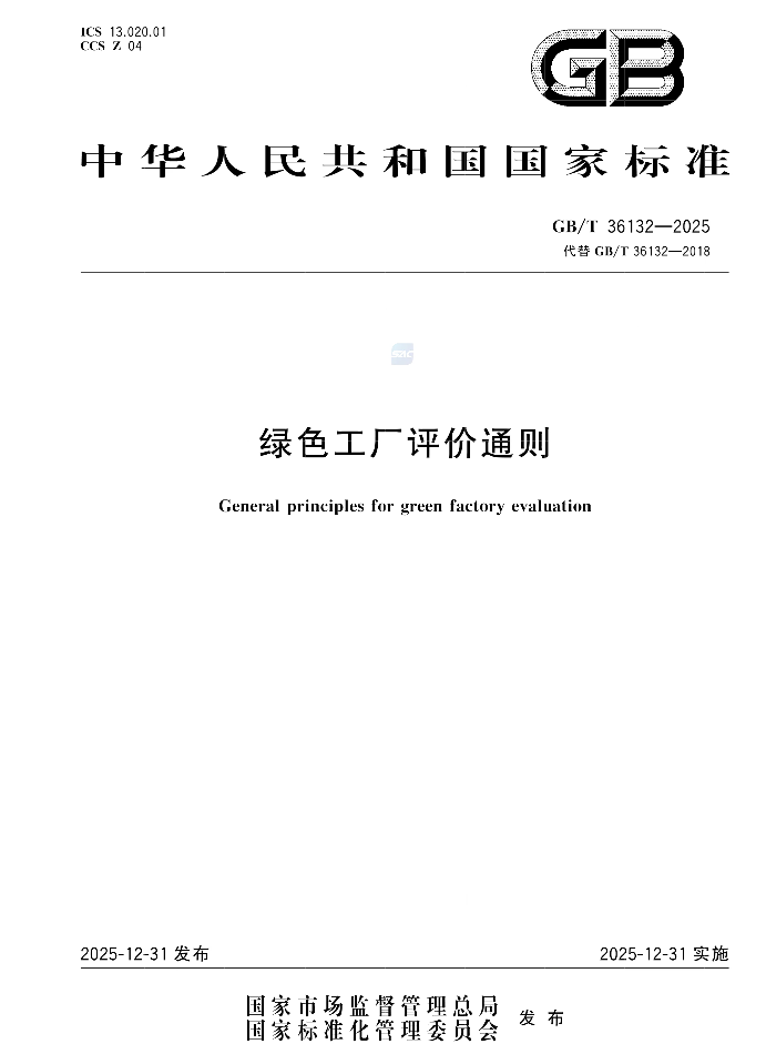 近日,《绿色工厂评价通则》(GB/T 36132—2025)国家标准发布,并于2025年12月31日起正式实施。该标准由工业和信息化部提出,中国电子技术标准化研究院牵头制定。这是该标准自2018年实施以来的首次修订,标志着我国绿色工厂培育工作进入新阶段。